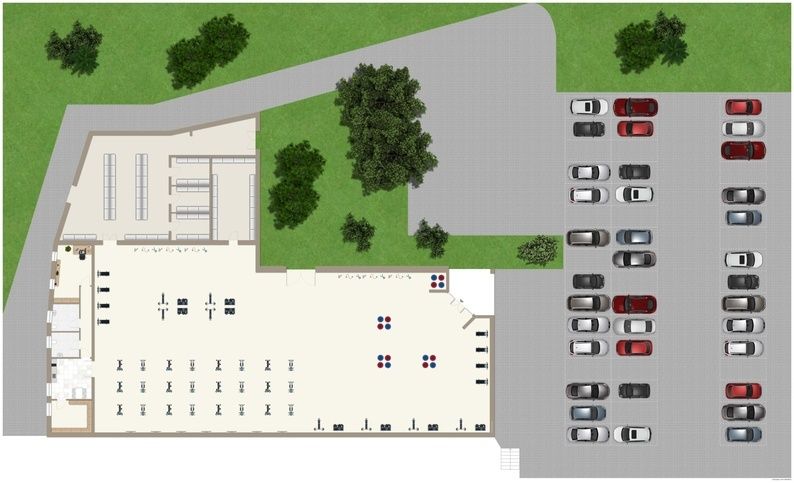 Zum Mietobjekt gehören ca. 50 Kundenparkplätze (unter Vorbehalt - die tatsächliche Anzahl wird noch geklärt)